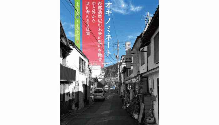 今回、その第一歩として、この西郷港周辺のまちづくりを自分事として捉え、様々な関わり方の中で、参画したいと考えていただける島内外の方々を巻き込みながら、まちづくりやエリアマネジメントについて学び、具体的なアクションに繋げていく3日間のプログラム「オキノミネート(okinominate)」を開催することといたしました!