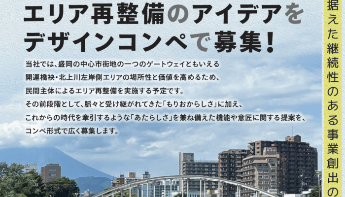 8/8から10/31までの期間で募集をした「盛岡・北上川左岸側開運橋袂エリア再整備デザインコンペ」(通称:開運橋コンペ)の1次審査会が11/12(木)に開催され、申込数24件、応募作品の中から入選作品5点が選ばれましたので、入選作品と応募者名及び審査講評を公開するとともに、今後の審査予定などを掲載しています。