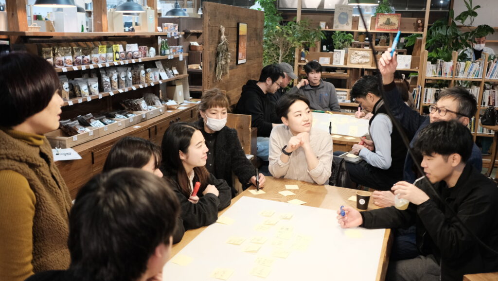 まずは、暮らしの雑貨や隠岐・島根のお土産を買えるだけでなく、ぬくもりを感じる木の大テーブルを囲むカフェスペースやワーキングスペースも兼ね揃える京見屋分店さんで開催された「まちづくりナイト」。