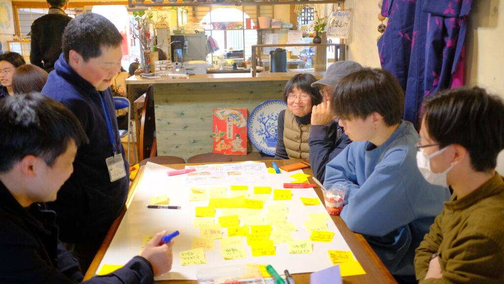 隠岐諸島の玄関口となっている隠岐の島町西郷港周辺において、令和5年度から10年計画で「西郷港周辺まちづくり事業」が動いています。その中で、官民連携における実装を担う民間主体として期待されている一般社団法人隠岐まちづくり研究所(以降、まち研)が主催し、住民や外部からの来訪者に対してまちづくりの現状を共有し、まちを良くするアイデアと関わり方に関する対話を通じて、まち研の応援団になっていただくための企画「まちづくりカフェ」「まちづくりナイト」にマチビトキタルメンバー(及川、小泉、遠藤、高野)が運営支援をしながら参加させていただきました。2日間で総勢40名近くの参加者の方々と、現在進んでいるまちづくりの動きを共有し、参加者皆さんの想いを伺う貴重な機会となりました。