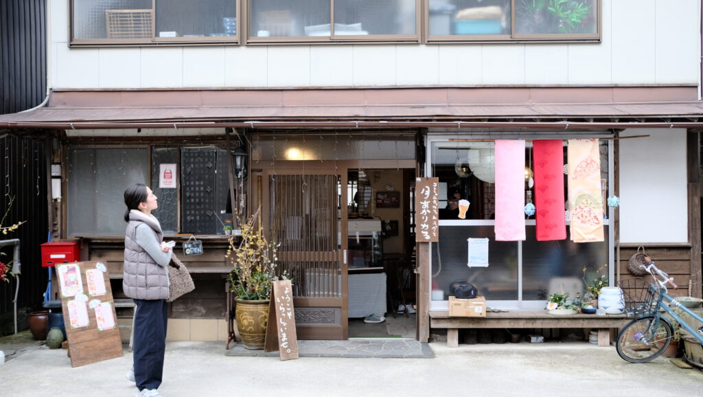 続いて、週末午前中に開催された「まちづくりカフェ」。会場は、和菓子屋が週末限定で運営する八尾川に面した古民家カフェの月あかりカフェ。